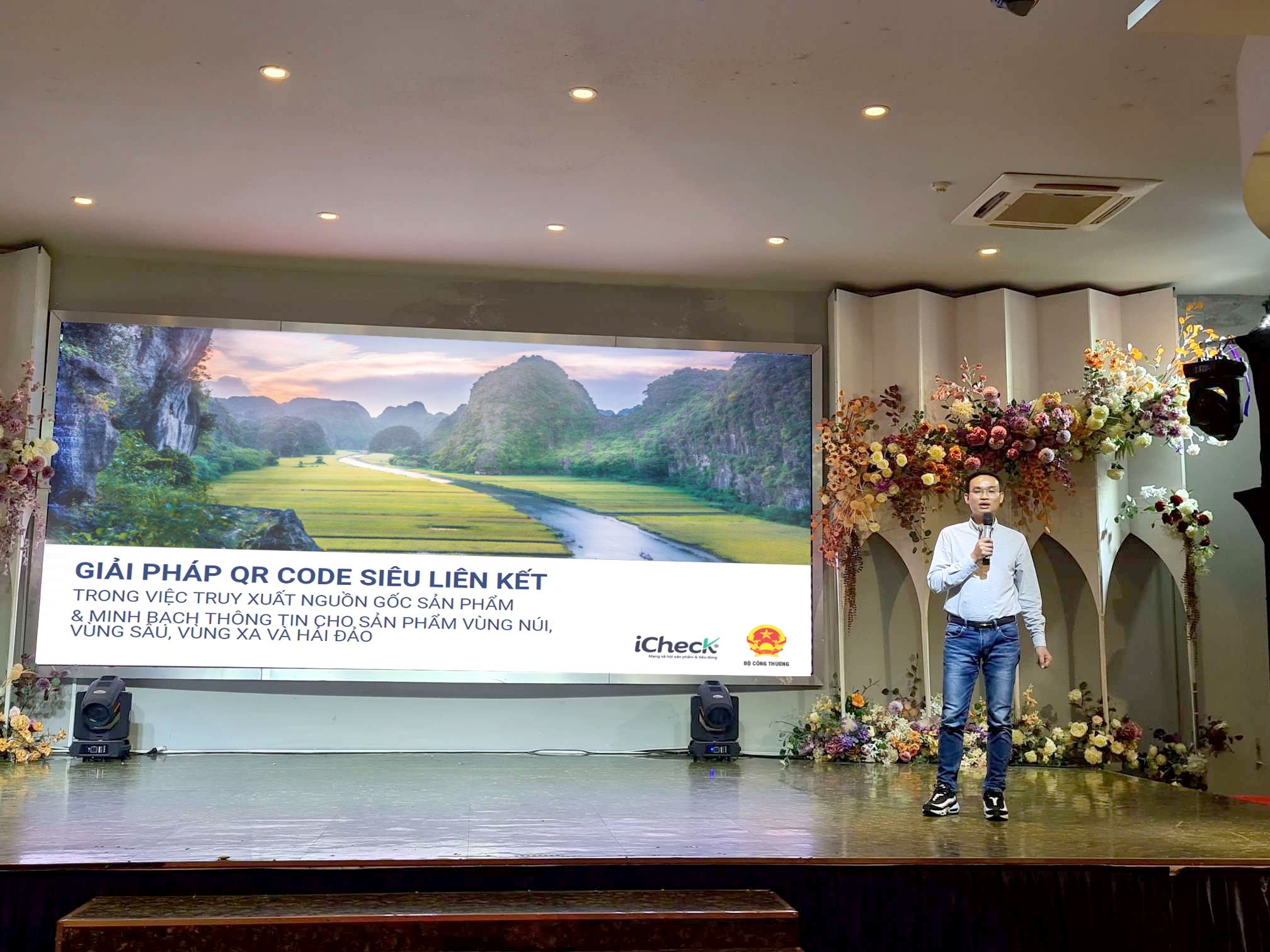 Ngày 01 tháng 10 năm 2020, tại Hà Nội, ông Nguyễn Văn Chính - Phó tổng giám đốc Công ty CP iCheck, giới thiệu QR code SIÊU LIÊN KẾT tại hội thảo “Quảng bá và kết nối thị trường sản phẩm đặc trưng khu vực miền núi, vùng sâu, vùng xa và hải đảo năm 2020”.